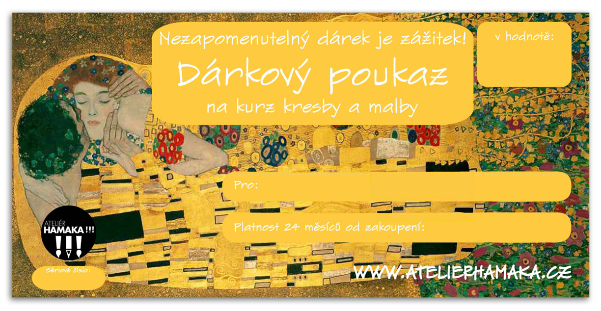 Nezapomenutelný dárek je zážitek, který získá Váš obdarovaný na našem výtvarném kurzu v ateliéru Hamaka! Dárkové poukazy platí 6 měsíců!